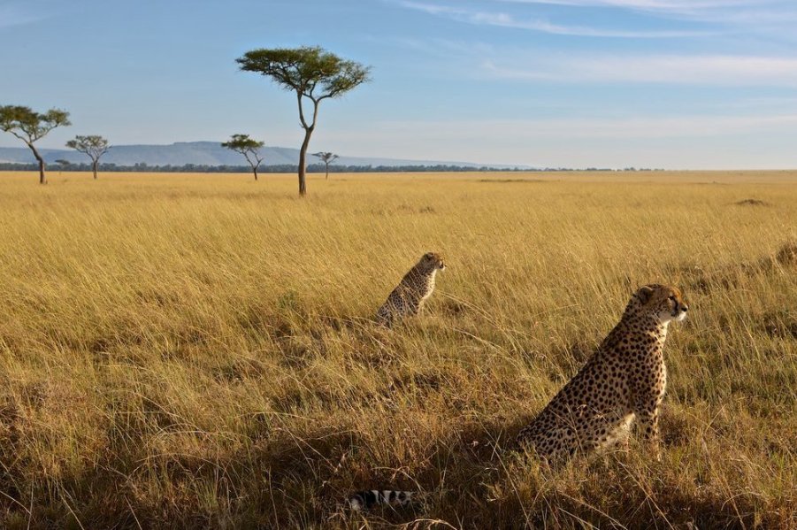 Maasai Mara National Reserve is an area of preserved savannah wilderness in southwestern Kenya, along the Tanzanian border. Its animals include lions, cheetahs, elephants, zebras and hippos. Wildebeest traverse its plains during their annual migration. The landscape has grassy plains and rolling hills, and is crossed by the Mara and Talek rivers. The area nearby is dotted with villages (enkangs) of Maasai people.