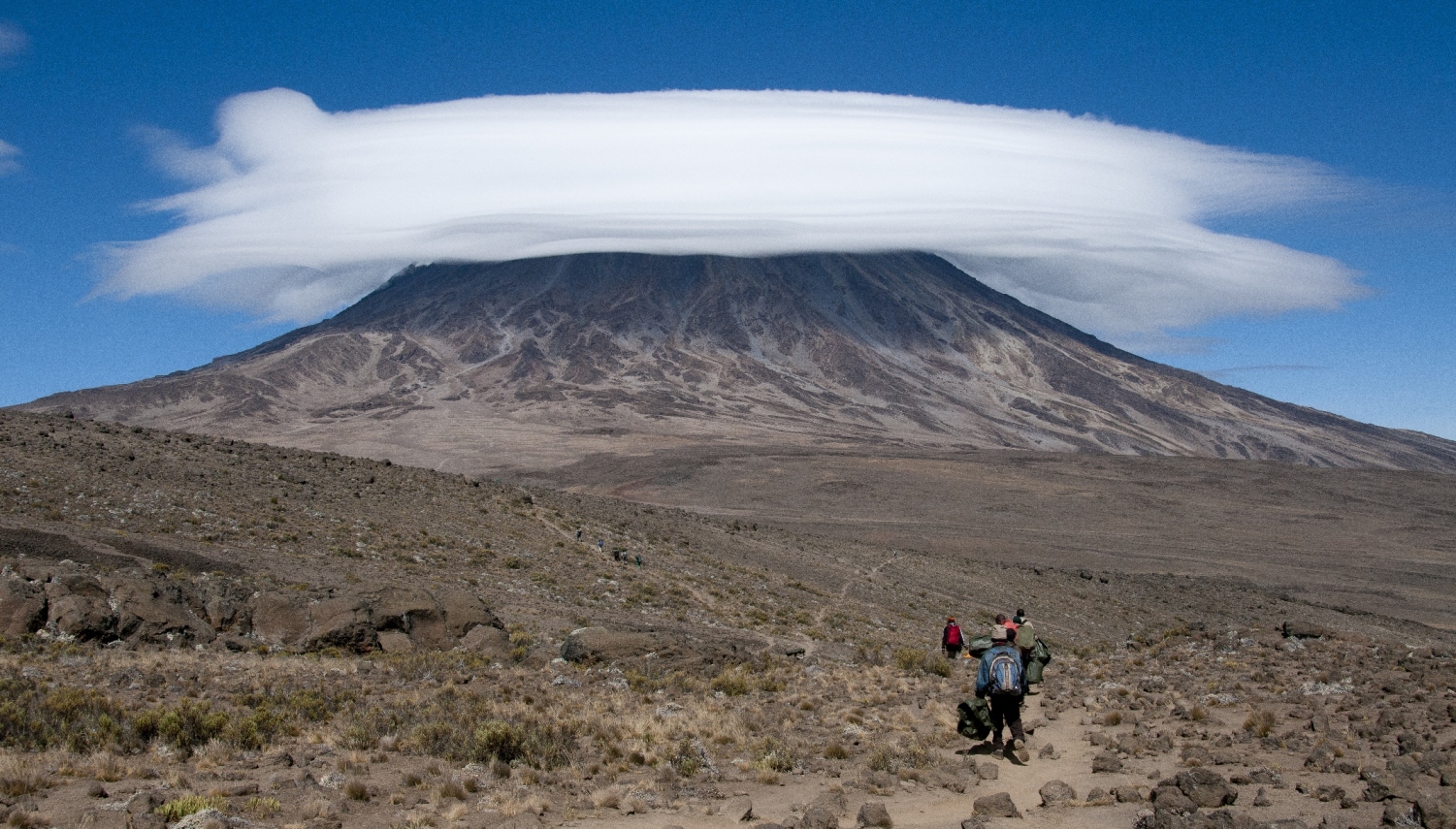 We cross the lunar desert of the ‘Saddle’ between Mawenzi and Kibo to reach Kibo hut(4,750 m.) at the bottom of the Kibo crater wall. The remainder of the day is spent resting in preparation for the final ascent before a very early night! [4-5 hours walking]